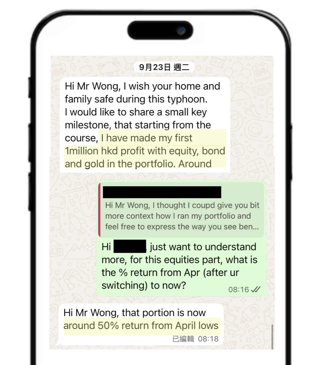就在上星期,他興奮地向我報喜:他成功用200多萬港元本金,賺取了人生第一個100萬港元利潤!