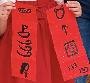 今年兩個女兒非常用心:她們做揮春不是直接寫字,而是用「圖案」把祝福語「拼」出來 ~ 需要您停一停、想一想、推理一下,才會得到答案。