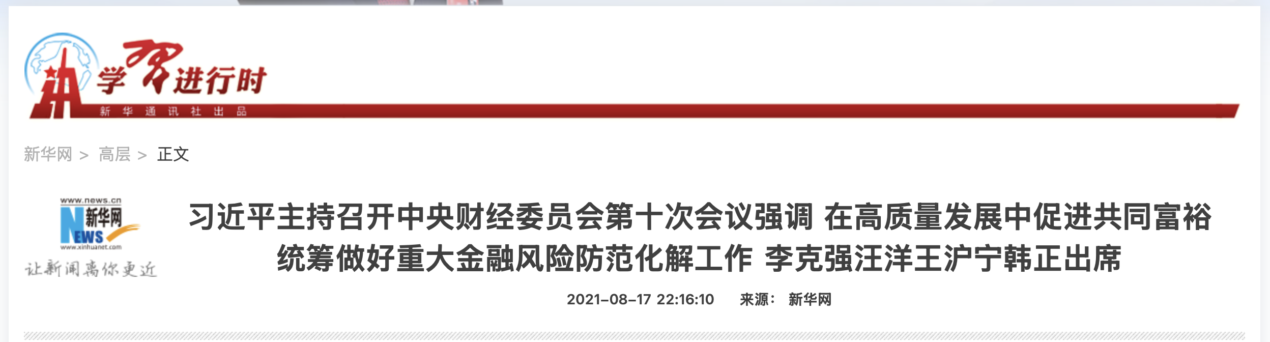 層次二(關鍵議程): 2020年11月3日,螞蟻集團IPO被突然叫停,這是一個石破天驚的議程設定事件,標誌著整頓風暴的開始。隨後,2021年8月17日,習近平主席在中央財經委員會會議上發表重要講話,將「共同富裕」系統化為國家目標,這是最權威的政策定調。